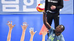 [OSEN=천안,박준형 기자]13일 오후 천안 유관순체육관에서 2020-2021 도드람 V-리그’ 남자부 현대캐피탈과 삼성화재의 경기가 진행됐다.1세트 삼성화재 고희진 감독이 득점 성공한 황경민의 손을 잡고 기뻐하고 있다 / soul1014@osen