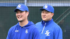 [OSEN=경산, 최규한 기자] 허삼영 감독이 이끄는 삼성 라이온즈가 1일 경상북도 경산시 삼성라이온즈 볼파크에서 2021 시즌을 준비하는 스프링캠프를 시작했다.삼성 오재일과 이성곤이 수비 훈련을 준비하며 대화를 나누고 있다. /
