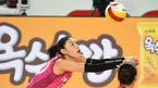 [OSEN=김천, 김성락 기자] 11일 오후 경북 김천시 김천실내체육관에서 ‘도드람 2020-2021 V리그’ 여자부 흥국생명과 도로공사의 경기가 열렸다.1세트 흥국생명 김세영이 강타를 하고 있다./ksl0919@osen.co.kr