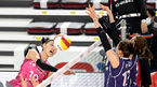 [OSEN=김천, 김성락 기자] 11일 오후 경북 김천시 김천실내체육관에서 ‘도드람 2020-2021 V리그’ 여자부 흥국생명과 도로공사의 경기가 열렸다.2세트 흥국생명 김연경의 강타가 도로공사 정대영에게 블록되고 있다./ksl0919@osen