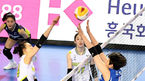 [OSEN=화성, 최규한 기자] 13일 오후 경기도 화성종합경기타운 실내체육관에서 ‘도드람 2020-2021 V-리그’ 여자부 IBK기업은행과 현대건설의 경기가 열렸다.2세트, 현대건설 양효진이 기업은행 김희진의 블로킹을 앞에 두고