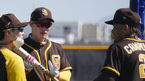 [OSEN=피오리아(미 애리조나주), 이사부 통신원] 샌디에이고 파드레스의 공식 훈련이 24일(한국시간) 진행됐다.김하성이 제이크 크로넨워스, 캄푸사노와 이야기를 나누며 타격 훈련을 있다. /lsboo@osen.co.kr