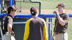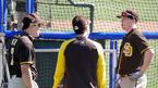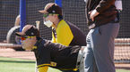 OSEN=피오리아(미 애리조나주), 이사부 통신원] 샌디에이고 파드레스의 공식 훈련이 24일(한국시간) 진행됐다.김하성이 동료들의 타격을 지켜보고 있다. /lsboo@osen.co.kr