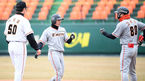 [OSEN=대전, 조은정 기자] 4일 대전 중구 한화생명 이글스파크에서 자체 청백전이 열렸다. 이날 청백전은 한화 1군 선수들과 2군 퓨처스 팀으로 진행됐다.한화 퓨처스 강상원이 안타를 때려낸 뒤 고동진 코치와 주먹을 맞대고 있다