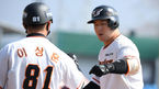 [OSEN=대전, 조은정 기자] 5일 대전 중구 한화생명이글스파크에서 키움 히어로즈와 한화 이글스의 연습 경기가 열렸다.1회말 2사 만루 한화 최재훈이 선취 2타점 적시타를 때려낸 뒤 이상훈 코치와 주먹을 치고 있다. /cej@osen.co.kr