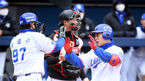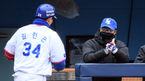 [OSEN=대구, 조은정 기자] 6일 대구 삼성라이온즈파크에서 삼성 라이온즈와 KT 위즈의 연습경기가 열렸다.5회말 1사 1,2루 삼성 김헌곤이 스리런 홈런을 날린 뒤 허삼영 감독의 환영을 받고 있다. /cej@osen.co.kr