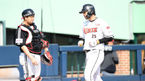 [OSEN=울산, 곽영래 기자] KT 위즈와 LG 트윈스가 9일 울산 문수야구장에서 연습경기를 가졌다.5회말 1사 KT 김건형이 안타를 때린 뒤 2루까지 진루하고 있다. /youngrae@osen.co.kr