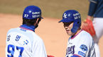 [OSEN=대구,박준형 기자] 10일 오후 대구삼성라이온즈파크에서 삼성 라이온즈와 NC 다이노스의 연습경기가 진행됐다.7회말 2사 3루 삼성 김응민이 동점 1타점 적시타를 날리고 강명구 코치와 하이파이브를 하고 있다. / soul1014@osen.co
