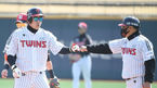 [OSEN=울산, 곽영래 기자] KT 위즈와 LG 트윈스가 10일 울산 문수야구장에서 연습경기를 가졌다.1회초 2사 만루 LG 이천웅이 2타점 적시타를 때린 뒤 김호 코치와 주먹 세레머니를 하고 있다. /youngrae@osen.co.kr