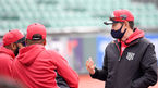[OSEN=울산, 곽영래 기자] KT 위즈와 LG 트윈스가 10일 울산 문수야구장에서 연습경기를 가졌다.KT 이강철 감독이 데스파이네, 알몬테와 이야기를 나누고 있다. /youngrae@osen.co.kr