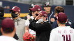 [OSEN=고척, 민경훈 기자] 11일 오후 서울 고척스카이돔에서 2021 시즌을 앞두고 키움 히어로즈와 두산 베어스의 연습경기가 진행됐다.5회초 2사 주자 1루 두산 정수빈에게 우중간 적시 3루타를 허용한 장재영이 박병호와 얘기를 나