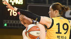 [OSEN=청주,박준형 기자] 11일 오후 충북 청주시 청주체육관서 'KB 국민은행 2020-2021 여자프로농구' 챔피언결정전 3차전 청주 KB와 용인 삼성생명 경기가 진행됐다.4쿼터 삼성생명 이명관이 레이업슛을 시도하고 있다./ soul1014@osen.co.k