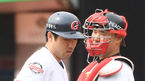 [OSEN=부산, 곽영래 기자] 11일 오후 부산 사직구장에서 롯데 자이언츠와 SSG 랜더스의 연습경기가 진행됐다.1회말 1사 1루 SSG 이재원이 사구를 맞은 롯데 전준우와 이야기를 나누고 있다. /youngrae@osen.co.kr