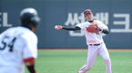 [OSEN=울산, 곽영래 기자] KT 위즈와 SSG 랜더스가 13일 울산 문수야구장에서 연습경기를 가졌다.1회초 무사 KT 정주후가 SSG 최지훈의 타구를 잡아 1루로 송구하고 있다. /youngrae@osen.co.kr
