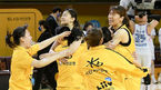 [OSEN=청주, 김성락 기자] KB 스타즈가 연장 접전 끝에 85-82로 승리하며 챔피언결정전 2승 2패, 승부를 원점으로 만들었다.승리가 확정된 순간 KB 선수들이 기뻐하고 있다./ksl0919@osen.co.kr
