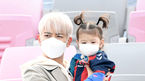 [OSEN=수원, 이대선 기자] 14일 오후 수원종합운동장축구장에서 ‘하나원큐 K리그1 2021’ 3라운드 수원FC와 성남FC의 경기가 열렸다.경기장을 찾은 샤이니 민호가 수원FC 박주호의 자녀 나은양과 응원을 하고 있다. /sunday@osen.co
