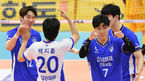 [OSEN=의정부, 김성락 기자] 18일 오후 경기 의정부실내체육관에서 '도드람 2020-2021 V리그' 남자부 KB손해보험과 삼성화재의 경기가 열렸다.2세트 삼성화재 선수들이 득점에 기뻐하고 있다./ksl0919@osen.co.kr