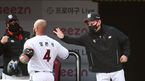 [OSEN=수원,박준형 기자] 18일 수원kt위즈파크에서 2021시즌 프로야구 kt위즈와 KIA 타이거즈의 연습경기가 진행됐다.6회말 KT 선두타자 알몬테가 역전 솔로홈런을 날리고 이강철 감독과 하이파이브를 하고 있다. / soul1014@osen.co.kr