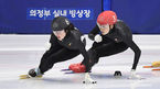 [OSEN=의정부, 곽영래 기자] 19일 경기도 의정부실내빙상장에서 제36회 회장배 전국 남녀 쇼트트랙 스피드스케이팅 대회가 열렸다.여자부 일반 3000M 결승 (빨) 노도희, (검) 김희연이 역주하고 있다. /youngrae@osen.co.kr