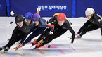 [OSEN=의정부, 곽영래 기자] 19일 경기도 의정부실내빙상장에서 제36회 회장배 전국 남녀 쇼트트랙 스피드스케이팅 대회가 열렸다.여자부 일반 3000M 결승 (빨) 노도희가 결승선에 1위로 들어오고 있다. /youngrae@osen.co.kr