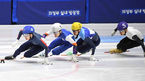 [OSEN=의정부, 곽영래 기자] 19일 경기도 의정부실내빙상장에서 제36회 회장배 전국 남녀 쇼트트랙 스피드스케이팅 대회가 열렸다.여자부 일반 1000M 결승 (보) 최민정, (파) 심석희, (빨)박지현, (노)이소연, (흰) 김지유가 스타트를