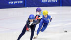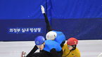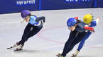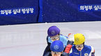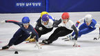 [OSEN=의정부, 곽영래 기자] 19일 경기도 의정부실내빙상장에서 제36회 회장배 전국 남녀 쇼트트랙 스피드스케이팅 대회가 열렸다.여자부 대학부 1000M 결승 (빨) 박지윤이 넘어지고 있다. /youngrae@osen.co.kr