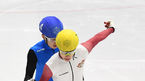 [OSEN=의정부, 곽영래 기자] 19일 경기도 의정부실내빙상장에서 제36회 회장배 전국 남녀 쇼트트랙 스피드스케이팅 대회가 열렸다.남자부 대학부 1000M 결승 (흰) 우준혁과 (빨) 이성우가 넘어지고 있다. /youngrae@osen.co.kr