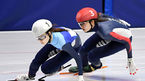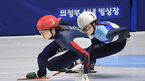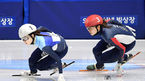 [OSEN=의정부, 곽영래 기자] 19일 경기도 의정부실내빙상장에서 제36회 회장배 전국 남녀 쇼트트랙 스피드스케이팅 대회가 열렸다.여자부 일반 1000M 준결승서심석희(오른쪽)와 최민정이 역주하고 있다. /youngrae@osen.co.kr