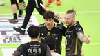 [OSEN=수원, 곽영래 기자] 20일 오후 수원 실내체육관에서 '도드람 2020-2021 V리그' 남자부 한국전력과 OK금융그룹의 경기가 열렸다.1세트 OK금융그룹 펠리페가 득점을 올린 뒤 동료들과 기뻐하고 있다. /youngrae@osen.co.kr