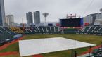 [OSEN=대전, 이대선 기자] 20일 대전 한화생명이글스파크에서 2021 신한은행 쏠 KBO리그 시범경기 한화 이글스와 LG트윈스의 경기가 열릴 예정이다.오전부터 봄비가 내리는 가운데 그라운드에 방수포가 덮여 있다. /sunday@osen.co.kr