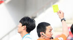 [OSEN=성남, 조은정 기자] 21일 오후 성남 탄천종합운동장에서 '하나원큐 K리그1 2021' 6라운드 성남FC와 포항스틸러스의 경기가 열렸다.후반 포항 이광준이 김영광에게 파울을 범한 뒤 옐로카드를 받고 있다. /cej@osen.co.kr