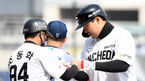 [OSEN=창원, 이대선 기자] 21일 창원NC파크에서 2021년 KBO리그 NC 다이노스와 SSG 랜더스의 시범경기가 열렸다.4회초 1사 1루에서 SSG 추신수가 최지훈의 적시타 때 홈을 밟은 한유섬과 환호하고 있다. /sunday@osen.co.kr