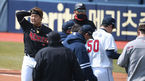 [OSEN=잠실,박준형 기자] 21일 오후 서울 잠실구장에서 2021년 KBO리그 두산 베어스와 KT위즈의 시범경기가 진행됐다.1회초 무사 1,3루 KT 강백호의 타구에 맞은 두산 선발투수 이영하가 쓰러져 교체되고 있다./ soul1014@osen.co.kr