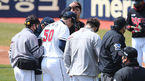 [OSEN=잠실,박준형 기자] 21일 오후 서울 잠실구장에서 2021년 KBO리그 두산 베어스와 KT위즈의 시범경기가 진행됐다.1회초 무사 1,3루 KT 강백호의 타구에 맞은 두산 선발투수 이영하가 부상으로 교체되자 강백호가 미안한 표정을 짓