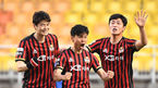 [OSEN=수원, 최규한 기자] 21일 오후 경기도 수원월드컵경기장에서 '하나원큐 K리그1 2021' 수원 삼성과 FC서울의 경기가 열렸다.전반 FC서울 기성용이 동점골을 작렬시킨 뒤 조영욱-박주영과 인사를 나누고 있다. / dreamer@osen.co.kr