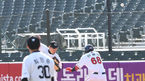 [OSEN=잠실, 지형준 기자] 23일 오후 서울 잠실구장에서 2021 KBO리그 시범경기 두산 베어스와 한화 이글스의 경기가 열렸다.7회말 무사에서 두산 오재원이 중전안타를 날리고 타구를 바라보고있다. /jpnews@osen.co.kr