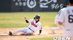 [OSEN=부산, 최규한 기자] 23일 부산 사직야구장에서 ‘2021 KBO리그’ 롯데 자이언츠와 SSG 랜더스의 시범경기가 열렸다.8회말 무사 선두타자로 나선 롯데 김재유가 2루타를 날리고 2루에 슬라이딩 해 세이프되고 있다. / dreamer