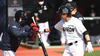 [OSEN=잠실, 지형준 기자] 23일 오후 서울 잠실구장에서 2021 KBO리그 시범경기 두산 베어스와 한화 이글스의 경기가 열렸다.5회초 2사 2루에서 두산 강승호가 한화 정은원의 3루땅볼 타구를 처리하고 있다. /jpnews@osen.co.kr