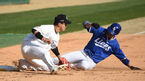 [OSEN=인천,박준형 기자] 25일 오후 인천 SSG랜더스필드에서 진행된 2021시즌 프로야구 SSG 랜더스와 삼성 라이온즈의 시범경기가 진행됐다.9회초 2사 1루 삼성 강한울이 1타점 적시 2루타를 날린뒤 3루에서 태그아웃되고 있다. / soul10