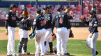 [OSEN=수원, 김성락 기자] 25일 오후 경기도 수원시 수원kt위즈파크에서 2021시즌 프로야구 kt 위즈와 한화 이글스의 시범경기가 진행됐다.7회말 2사 만루 KT 신본기가 3타점 적시 2루타를 날린 뒤 세레모니를 하고 있다./ksl0919@osne.co.kr
