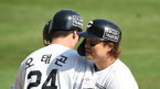 [OSEN=수원, 김성락 기자] 25일 오후 경기도 수원시 수원kt위즈파크에서 2021시즌 프로야구 kt 위즈와 한화 이글스의 시범경기가 진행됐다.5회말 무사 KT 송민섭이 솔로 홈런을 날린 뒤 그라운드를 돌며 최만호 코치와 하이파이브를