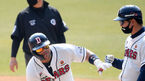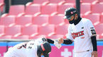 [OSEN=수원, 김성락 기자] 25일 오후 경기도 수원시 수원kt위즈파크에서 2021시즌 프로야구 kt 위즈와 한화 이글스의 시범경기가 진행됐다.4회말 1사 1, 3루 KT 조용호가 1타점 적시타를 날린 뒤 박정환 코치와 하이파이브를 하고 있다