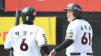 [OSEN=수원, 김성락 기자] 25일 오후 경기도 수원시 수원kt위즈파크에서 2021시즌 프로야구 kt 위즈와 한화 이글스의 시범경기가 진행됐다.2회말 2사 1, 2루 KT 심우준의 역전 2타점 적시 2루타 때 1루 주자 박경수, 2루 주자 유한준이