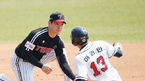 [OSEN=잠실, 민경훈 기자] 25일 오후 서울 잠실구장에서 2021 KBO리그 시범경기 LG 트윈스와 두산 베어스와 LG 트윈스의 경기가 열렸다.3회말 2사 주자 1루 두산 정수빈 타석에서 1루 주자 허경민이 도루를 시도했으나 LG 유격수 오지환