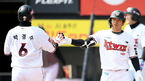 [OSEN=수원, 김성락 기자] 25일 오후 경기도 수원시 수원kt위즈파크에서 2021시즌 프로야구 kt 위즈와 한화 이글스의 시범경기가 진행됐다.2회말 1사 1 ,3루 KT 박경수가 1타점 적시타를 날린 뒤 박정환 코치와 하이파이브를 하고 있다
