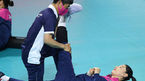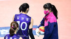 [OSEN=장충, 이대선 기자] 26일 오후 서울 장충체육관에서 ‘2020-2021 도드람 V-리그’ 여자부 챔피언 결정전 1차전 GS칼텍스와 흥국생명의 경기가 열릴 예정이다.흥국생명 김연경이 김세영의 격려를 받고 있다. /sunday@osen.co.kr