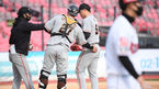 [OSEN=수원,박준형 기자] 26일 오후 수원kt위즈파크에서 2021시즌 프로야구 kt 위즈와 한화 이글스의 시범경기가 진행됐다.9회말 1사 만루 한화 서균 투수가 연속 볼넷을 허용하며 강판되고 있다. / soul1014@osen.co.kr