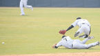[OSEN=잠실, 곽영래 기자] 26일 오후 서울 잠실야구장에서 LG 트윈스와 두산 베어스의 시범경기가 열렸다.7회초 2사 1,2루 LG 구본혁과 정주현이 두산 김재환이 타구를 잡으려다 넘어지고 있다. /youngrae@osen.co.kr