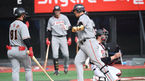 [OSEN=광주, 최규한 기자] 26일 광주-KIA 챔피언스필드에서 ‘2021 KBO리그’ KIA 타이거즈와 롯데 자이언츠의 시범경기가 열렸다.4회말 1사 1, 2루 상황 KIA 최원준이 안타를 날리고 1루에 안착해 이현곤 코치와 인사를 나누고 있