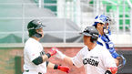 [OSEN=수원,박준형 기자] 26일 오후 수원kt위즈파크에서 2021시즌 프로야구 kt 위즈와 한화 이글스의 시범경기가 진행됐다.2회초 한화 선두타자 이성열이 안타를 날리고 이상훈 코치와 하이파이브를 하고 있다./ soul1014@osen.co.kr